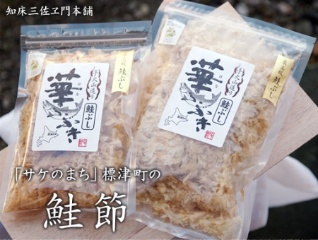 三佐ヱ門本店の「鮭節」は、北海道産の鮭を使用し、丁寧に乾燥・燻製して仕上げた風味豊かなだし素材です。鰹節に比べてやさしくまろやかな旨みが特徴で、素材の味を引き立てながら料理全体にコクを加えてくれます。