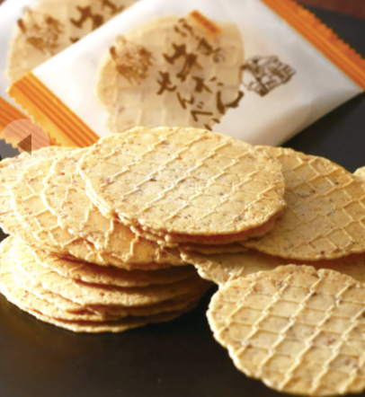 仙台名物である牛タンを生地に練り込んで「カリッと」香ばしく焼き上げたせんべいです。