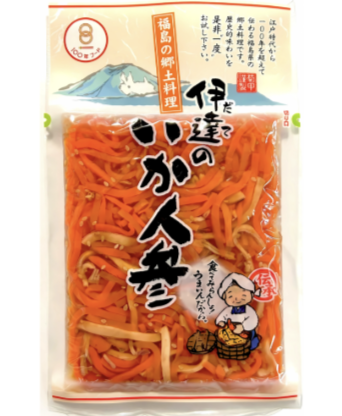 スルメとにんじんを醤油ベースで味付けした、お酒のおつまみにも最適な商品です。
