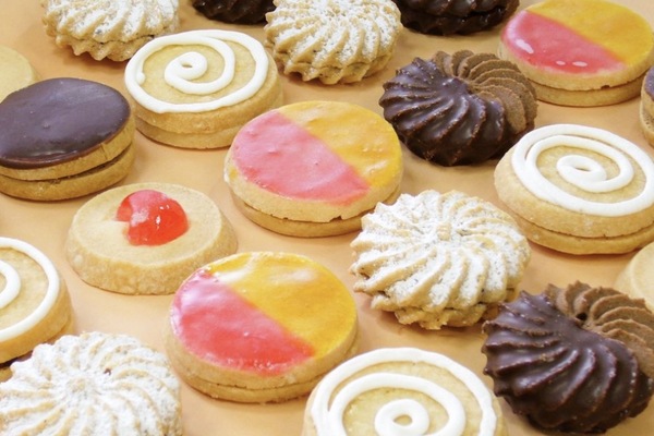 クッキー生地に風味豊かなフレッシュバターをふんだんに使用し、グルテン含有量の少ない小麦粉と独自製法により、ソフトな食感を実現しています。